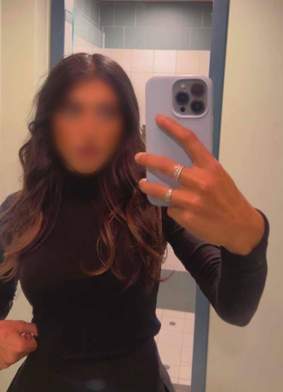 Layla is a 23-year-old British Indian beauty with a naturally pretty face and an elegant, feminine presence. Standing at 5’3” with a petite, slim size 6 figure and a natural 32C cup size, she carries herself with effortless grace. Her straight brown hair and polished appearance reflect a clean, natural beauty.